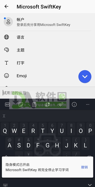 对于许多习惯了手机自带或者搜狗、讯飞等国内主流输入法的朋友来说,可能经常会遇到各种烦人的权限索取或者强制登录要求,今天给大家推荐的这款微软官方出品的swiftkey输入法,绝对能让你耳目一新,这是一款非常干净、轻量级的安卓输入辅助工具,不仅提供了海量个性化皮肤和智能表情搜索,在文字联想和模糊输入上更是准得惊人,帮你轻松敲出想说的话,虽然它是微软的作品,但对中文及多国语言的支持极其完美,最棒的是,针对大家普遍担心的隐私泄露问题,它特别加入了一个“隐身模式”,在这个状态下,你敲打的任何内容都不会被系统记录,真正做到私密聊天不留痕迹。