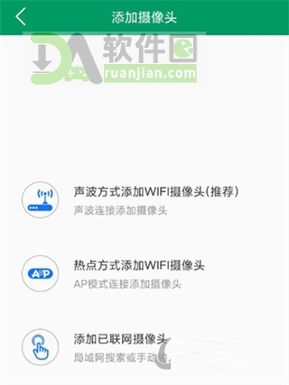 2、系统会给出几种配网方式:推荐用“声波配网”(手机播放音频信号让摄像头接收),也可以选“热点模式”或直接添加已联网的设备;