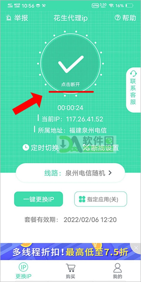 4、连接成功后,界面会显示剩余时长,并出现【连接断开】的按钮,说明当前IP已生效,可以正常使用了。