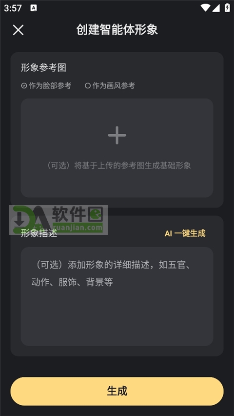 5、确认外观后,点击“生成”让系统渲染完整形象。