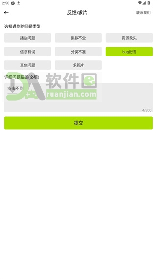 2、在反馈框里写清楚遇到的问题或建议,还能从下拉菜单里选问题类型(比如“播放异常”“界面建议”),再附上当前画面截图更直观;