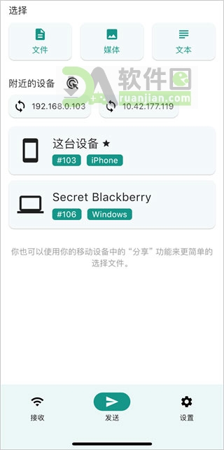 自动发现设备,操作极简在同一Wi-Fi下,设备会自动出现在列表中,点击目标设备即可发送,接收方确认后立即开始传输,无需配对或扫码。