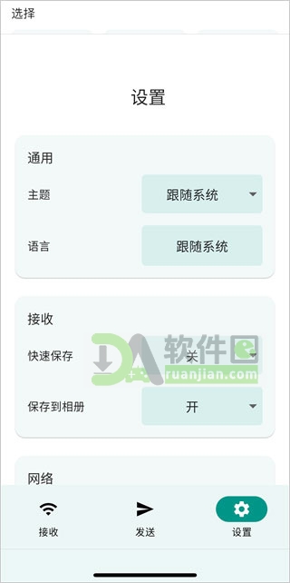 5.你还可以进入设置,自定义接收行为,例如是否自动保存文件、是否在保存后打开图库等。