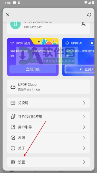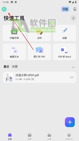 1.打开UPDF应用,点击左上角的个人头像,进入主菜单;