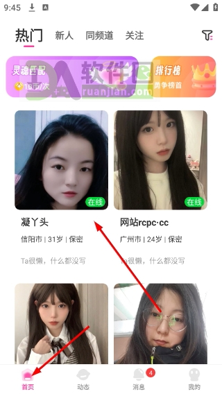 1、打开首页就能看到系统为你挑出的热门用户,比如“凝丫头”这类高活跃度的小伙伴,点进去看看她的资料合不合眼缘。