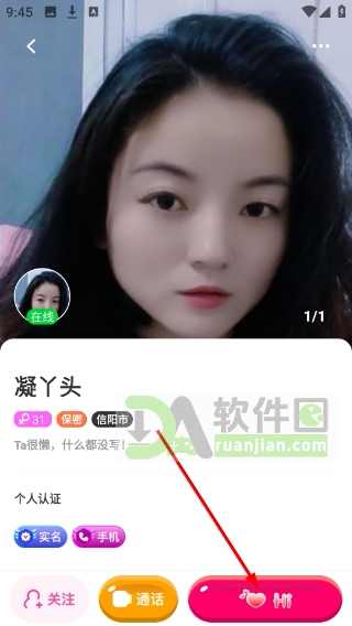 2、在对方的个人主页里,你能看到她是否完成实名或真人认证,觉得靠谱就直接点“Hi”打个招呼,开启对话。