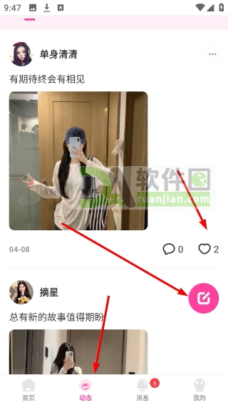 4、除了私聊,也可以逛逛“动态”页面,给别人的日常点个赞、留个言,或者自己发条状态,让更多人认识你。