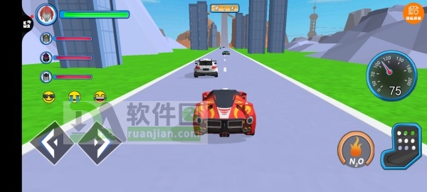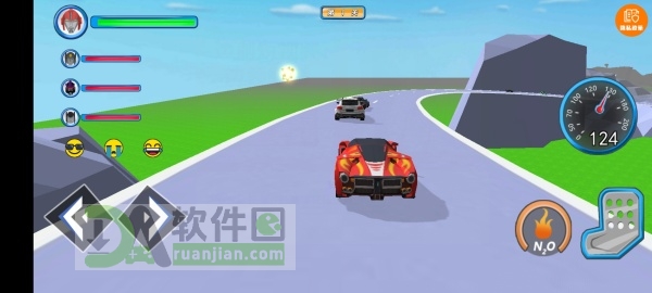 1、进入游戏,驾驶赛车开始竞速,一路冲刺冒险,甩开沿路的车辆。