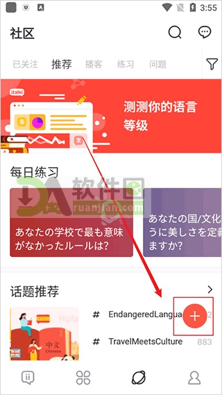 1、打开App后先选好你要学的语言,如果首页没显示,可以用搜索找;