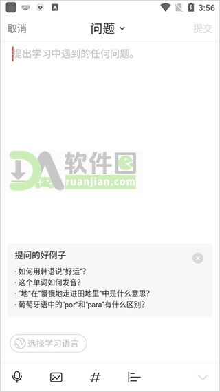 4、进入编辑页后,把你的问题写清楚,比如“如何用西班牙语礼貌拒绝邀请?”或者“德语动词变位总记混怎么办?”;