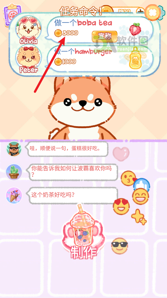 狗狗茶大师游戏是一款全新概念的沉浸式美食直播游戏。游戏中玩家需要协助一只萌宠小狗完成它的美食直播演出,你需要实时制作各种美味,如清爽的饮品、汉堡、披萨,观众也会在直播中提出各种有趣的需求,完成就能获得金币奖励!