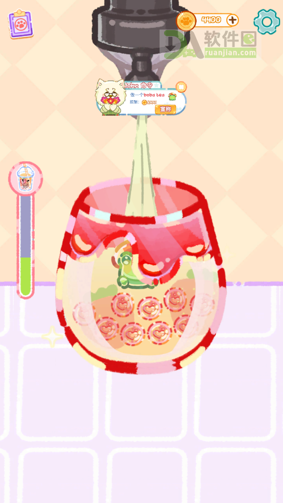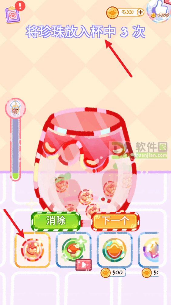 2、首先我们来制作一杯饮品,取出相应的杯子,按照指示放入珍珠。