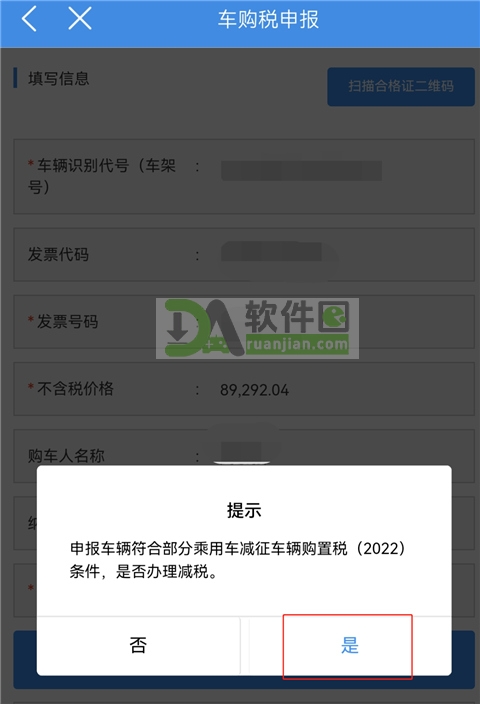 3、若符合当前优惠政策,系统会弹出确认窗口,勾选“是”即可享受减免。