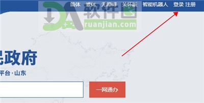 3、打开浏览器访问 山东政府网,点击右上角“注册”按钮。