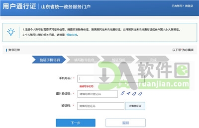注意:所有新用户必须通过 山东省统一政务服务门户 完成账号注册,App内仅支持登录已有账号。