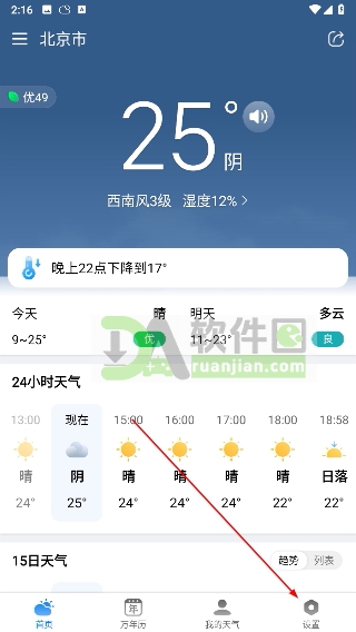 1、打开App首页,点击右下角“设置”图标,进入设置页面;