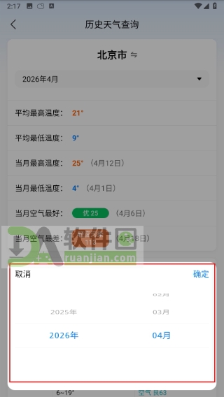 4、选择你想查询的具体年月,点击“确定”,即可查看该月每日的历史天气记录(包括最高/最低温、天气状况等)。
