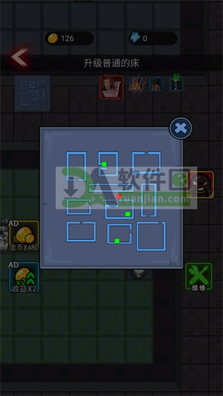 3、对局中引导员进入了宿舍,你需要搜集金币资源,为后续的建设和发展做准备。