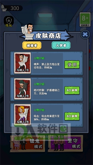 1、标准马桶人模式中怪物外观替换为马桶人,被击中时播放冲水音效。