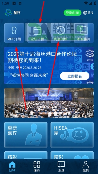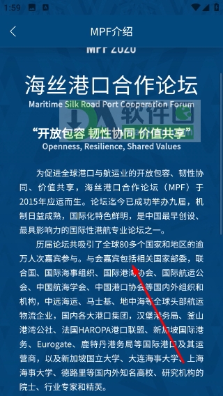1、打开MPF论坛APP首页,点击【MPF介绍】按钮,即可深入了解海丝港口合作论坛的创立背景、核心理念与发展历程。