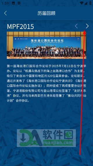 3、通过【历届回顾】入口,可浏览过去三年的论坛盛况,左右滑动或点击箭头切换年份,查看往届嘉宾发言、会议成果与精彩瞬间。