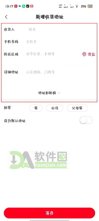 4、把收件人、电话、详细地址这些信息填清楚,确认无误后点保存,新地址就加好了。