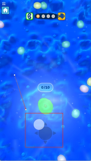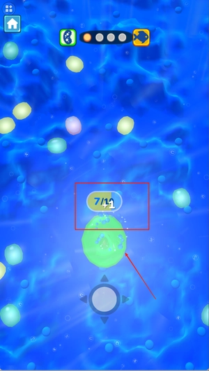 你可以通过操作控制角色在场景中左右移动,当角色接近体型比自身小的生物时,就会自动将其摄入,从而获取能让自身成长的能量。