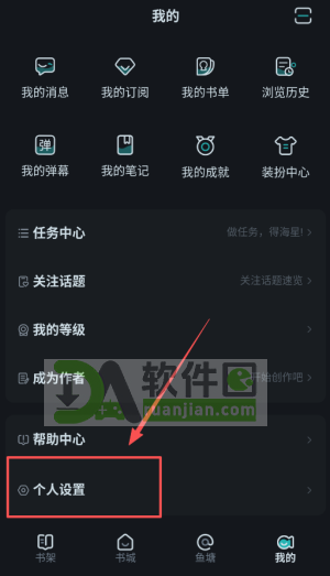 2、点击【个人中心】→【阅读设置】,可自定义背景主题、字体大小、行间距和翻页方式,打造专属阅读环境;