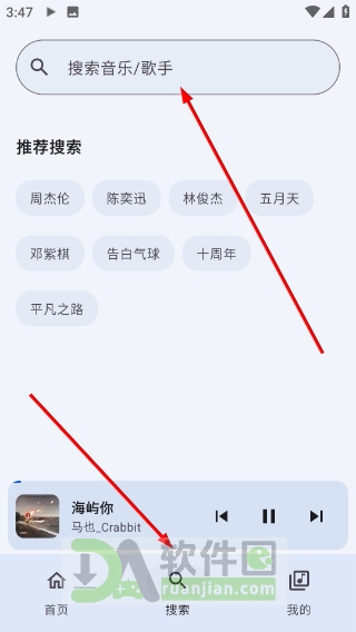 4、如果想找特定歌曲或歌手,可以点进搜索页,在顶部输入框直接打字查找。