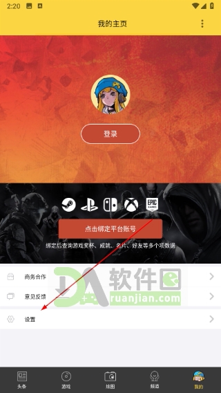 2、在页面中找到并点击“设置”,打开软件设置菜单。