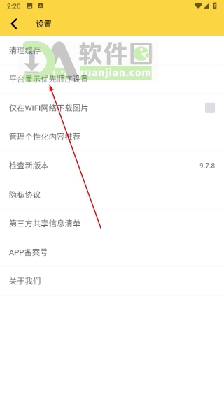 3、进入后选择“平台设置”,跳转到平台排序页面。