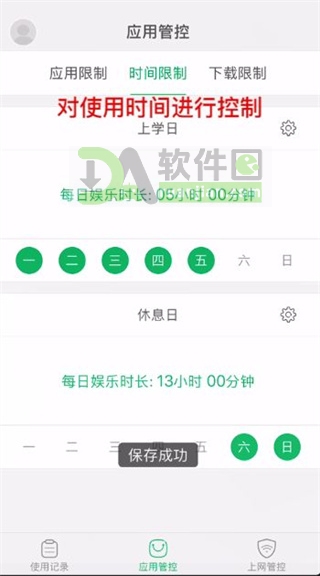 2、既可限制应用类型,又能设定时间段,双重管控机制让管理更精准、更人性化。