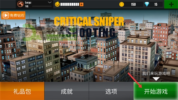 1、按下绿色的【开始游戏】按键,就能启动【CRITICAL-SNIPER-SHOOTING】的射击征程。