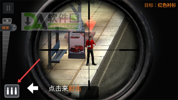 3、校准好准心位置后,点击左侧的子弹标识,按照提示【点击来射击】,完成对目标的消灭行动。
