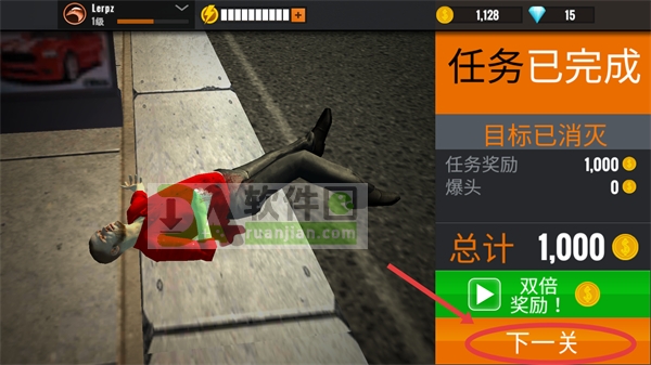 4、完成挑战后,可看到【任务已完成】显示,点击【下一关】按键继续闯关,领取【1,000】金币酬劳。
