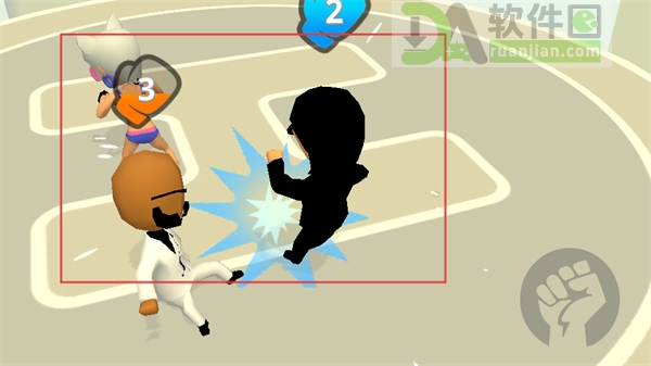 2、在圆形擂台内灵活走位闪避对手攻击,同时持续进攻,快速打倒敌人。