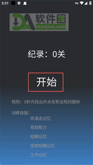 1、打开应用后,在首页选择训练模式,如“闪记”(快速记忆)、“图记”(图像回忆)或“数字记忆”等,开始你的训练。