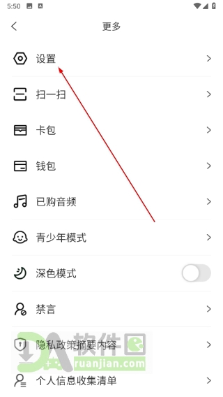 3、在弹出的菜单中选择“设置”选项,进入软件详细设置页面。