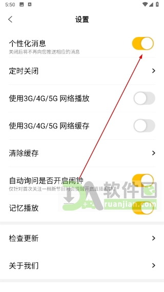 4、在设置页面中找到“消息推送”或“个性化消息”开关,点击将其关闭,即可停止接收基于兴趣推荐的个性化通知。