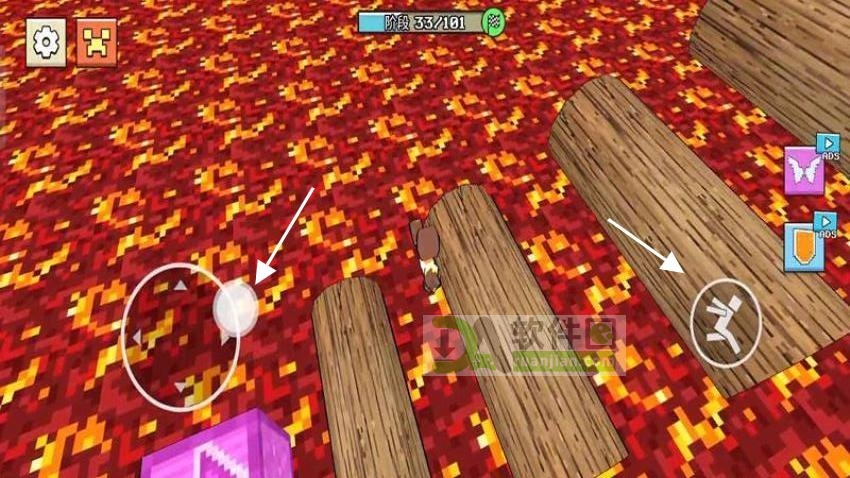在遍布炽热岩浆的区域,需要沿着狭窄的木桥谨慎前行,时刻留意脚下,避开那些致命的岩浆池。