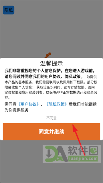1、首先启动游戏,仔细阅读并接受《用户协议》和《隐私政策》;