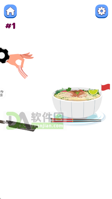 3、整个操作过程简单明了,主要玩法就是运用煎锅把培根精准投射到各种目标之上,通过巧妙的组合搭配来顺利通过每一关。