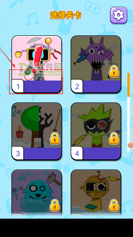 1、在关卡列表界面,选择任意一个关卡按钮,例如"1",启动你的挑战之旅。