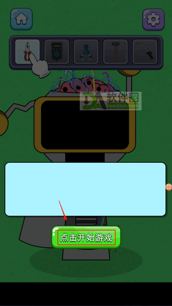 3、点击"老虎钳"工具,根据提示剪断电线,达成关卡要求。