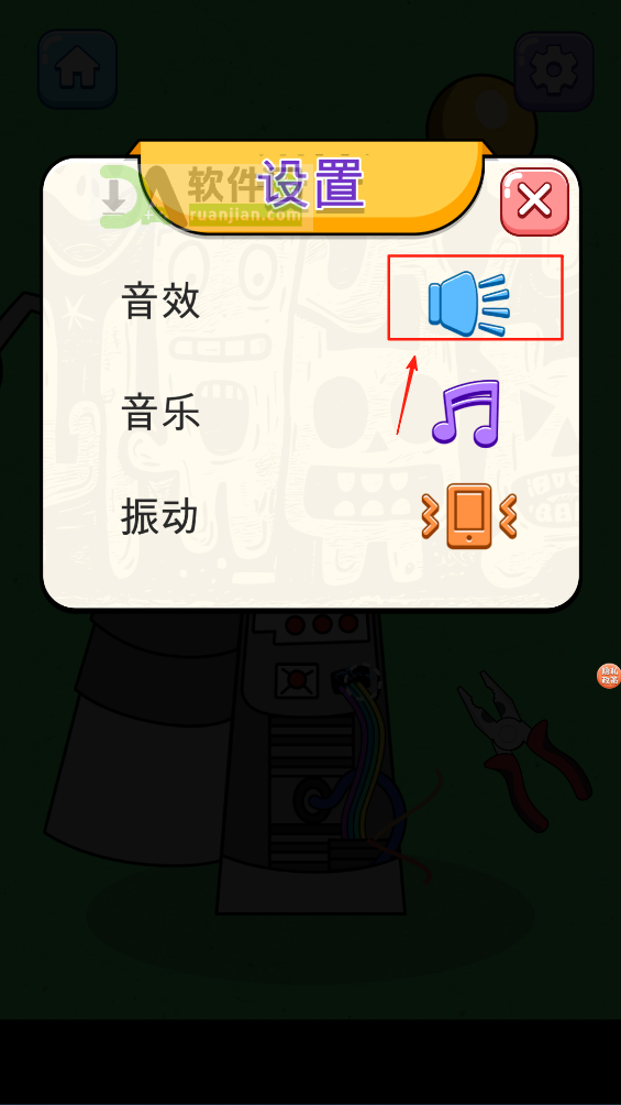 4、点击配置按钮,可以调节音效、背景音乐和震动等设置,提升游戏体验。